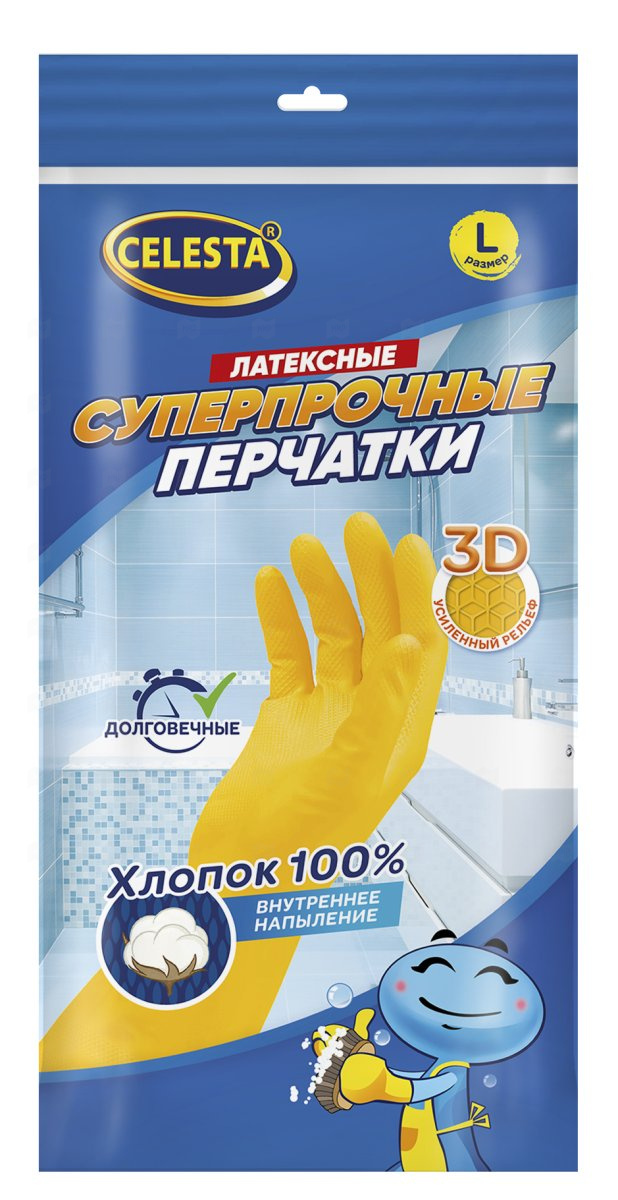 Перчатки хозяйственные латексные с хлоп напылением L CELESTA