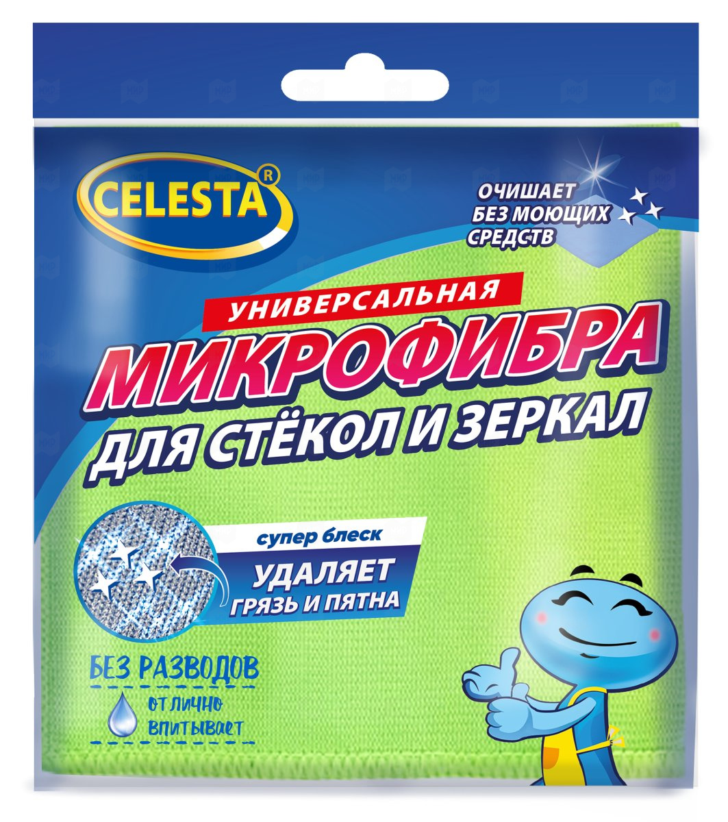 Салфетки из микрофибры д/стекол и зеркал 30*30см 1шт CELESTA