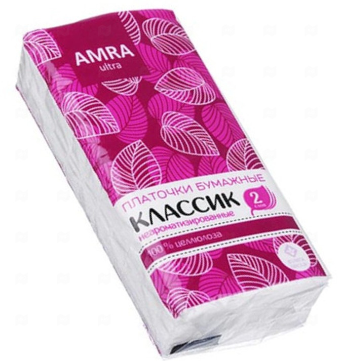 Платочки бумажные 2сл белые 10шт Amra Классик