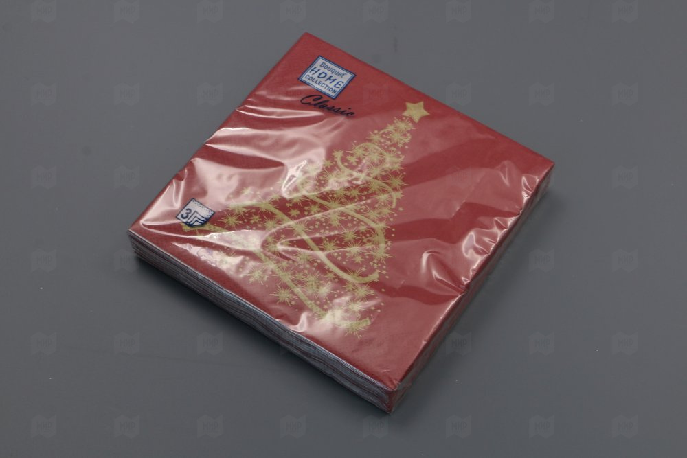 Салфетки бумажные НГ 33*33см 3сл Волшебная ель на бордовом 20шт Bouquet Home Collection