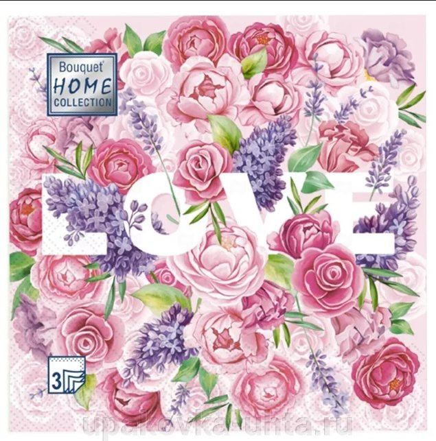 Салфетки бумажные 33*33см 3сл Цветы любви 20шт Bouquet Home Collection
