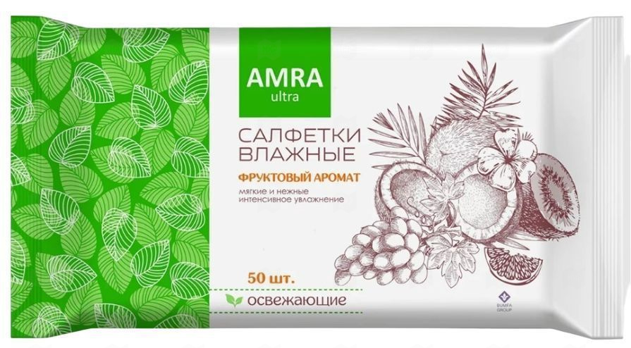 Салфетки влажные 50шт освежающие AMRA фруктовый аромат