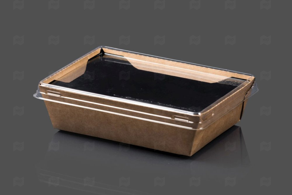Контейнер бум с крышкой 500мл 145/160*100/120*45мм крафт+черный