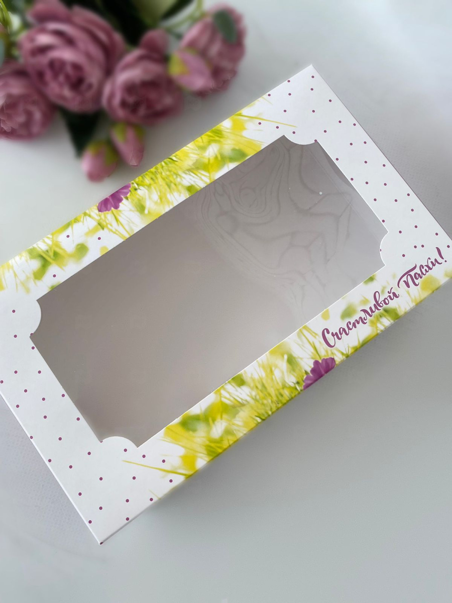 Коробка бум для зефира с окном 250*150*70мм моноблок Пасха