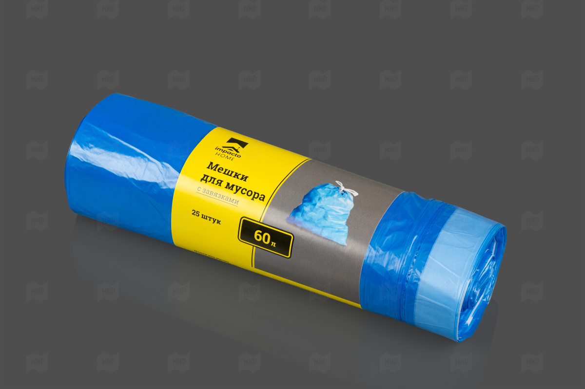 Пакеты д/мусора ПНД с завязками Impacto home 60л 600*690мм 11мк рулон 25шт синие
