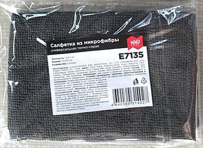 Салфетка микрофибра 30*30см универсальная темно-серая 1шт