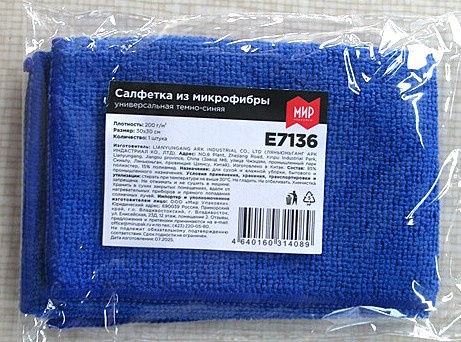 Салфетка микрофибра 30*30см универсальная темно-синяя 1шт ШК
