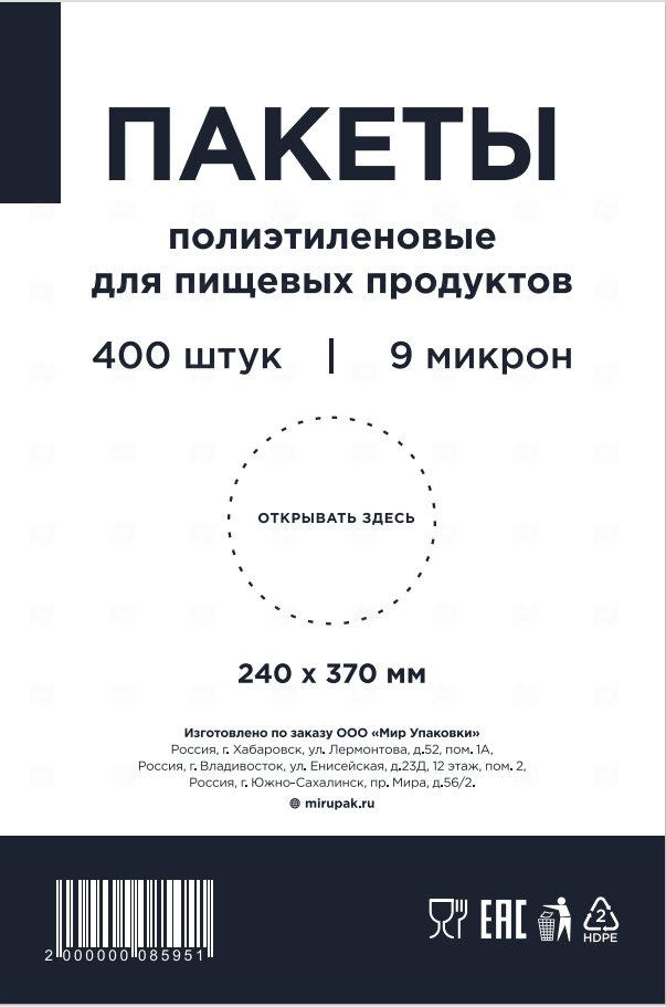 Пакет фасовочный ПНД 24*37см 9мк 400шт