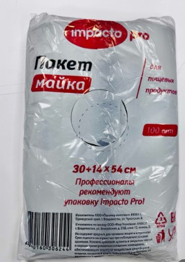 Пакет майка ПНД 30+14*54см 28мк черный Impacto Pro 100шт АКЦИЯ