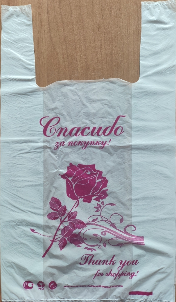 Пакет майка ПНД 28+14*50см 13мк Спасибо за покупку
