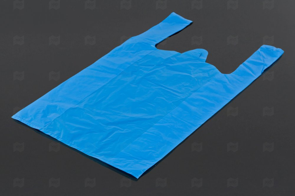 Пакет майка 24+12*45см 10мк синий 100шт