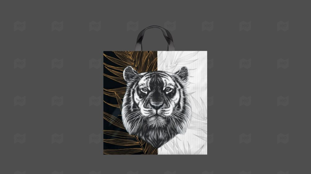 Пакет с петлевой ручкой 44*44см 70мк Тигр