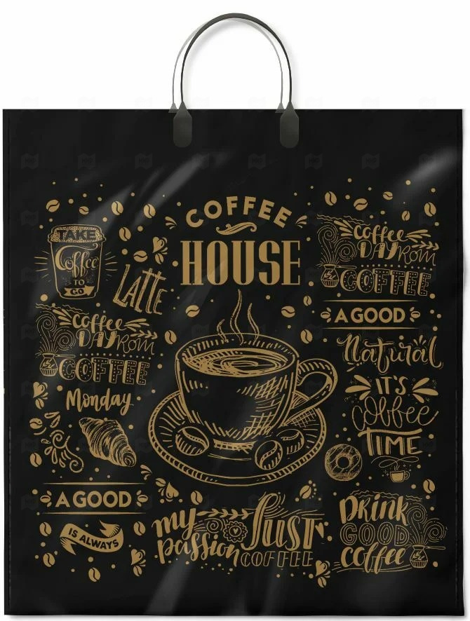 Пакет с пластиковой ручкой 40*44см 100мк Кофейня
