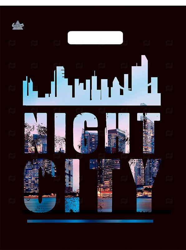Пакет с вырубной ручкой 45*34см 30мк Сити найт 50шт