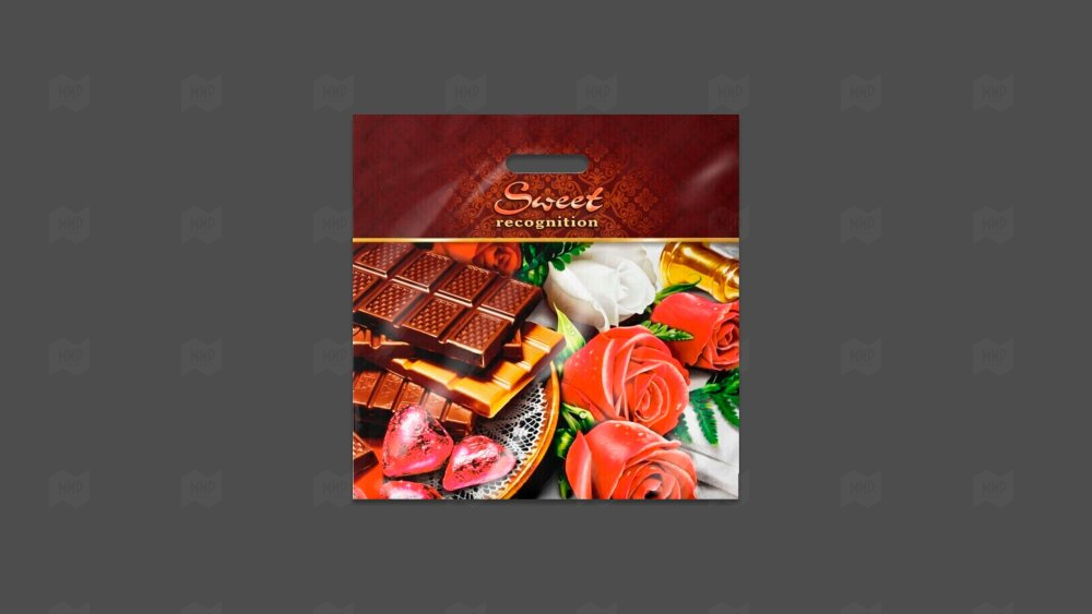 Пакет с вырубной ручкой 44*44см 70мк Признание 50шт