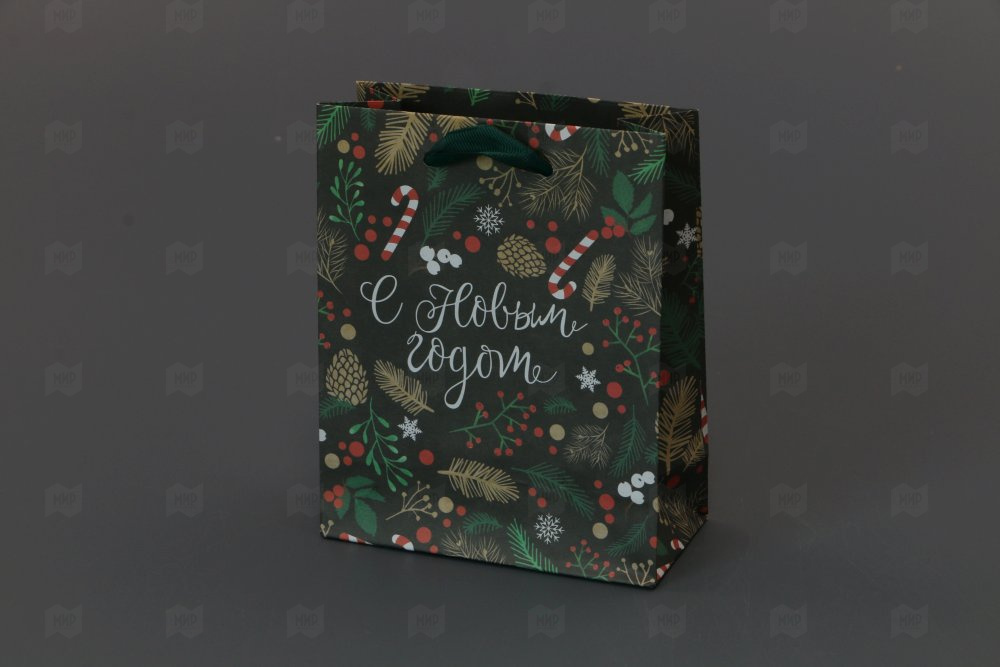 Пакет подарочный крафтовый 12*15*5,5см Еловый лес НГ