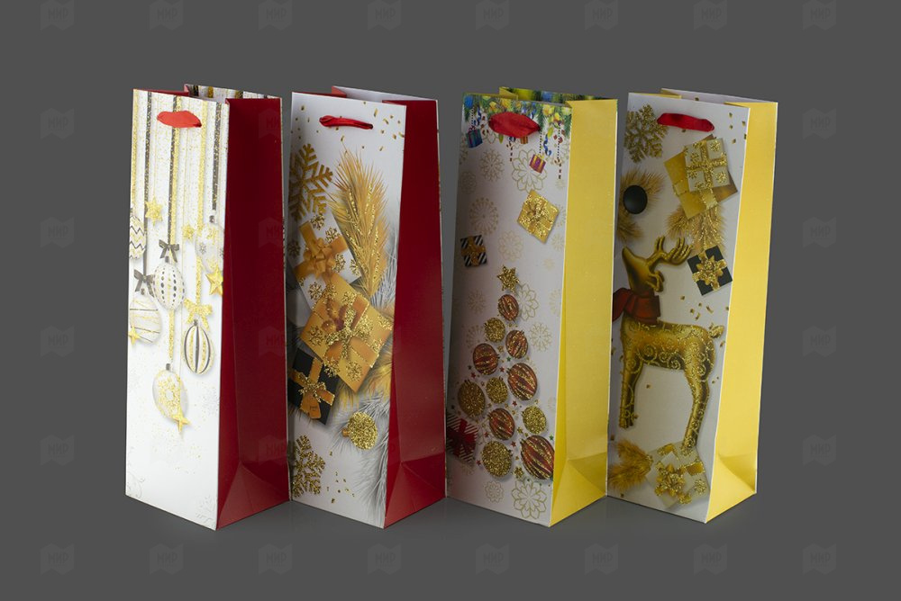 Пакет ламинированный под бутылку 35*12*9см Символы Нового Года-1 НГ SCW444-ABCD