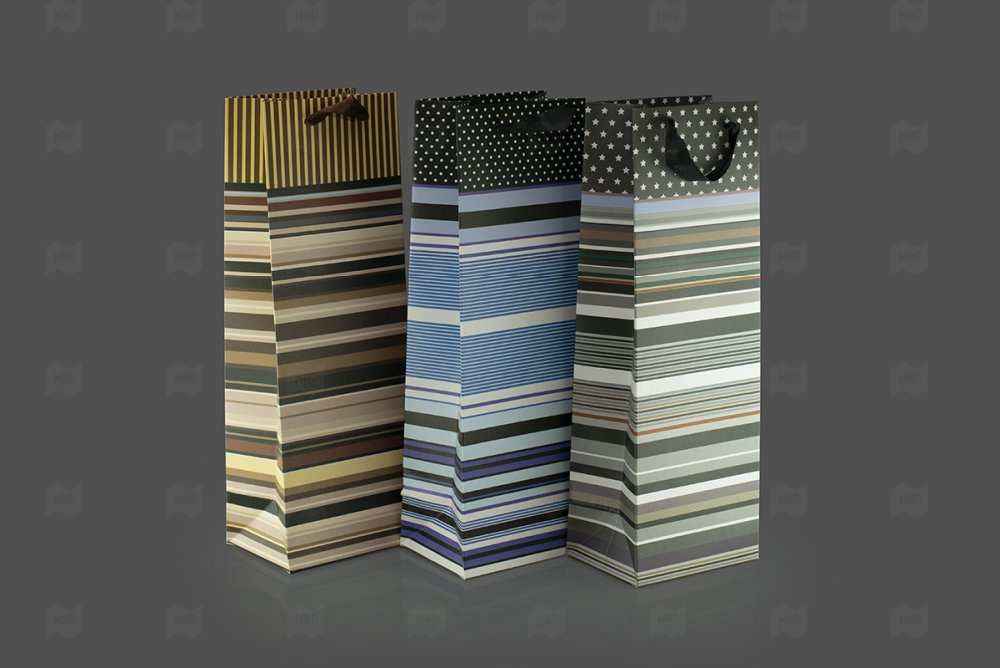 Пакет ламинированный под бутылку 35*12*9см Ассорти №42 12шт