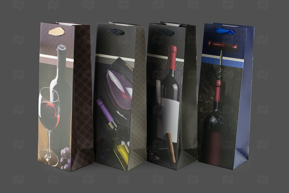 Пакет ламинированный под бутылку 35*12*9см Ассорти №130