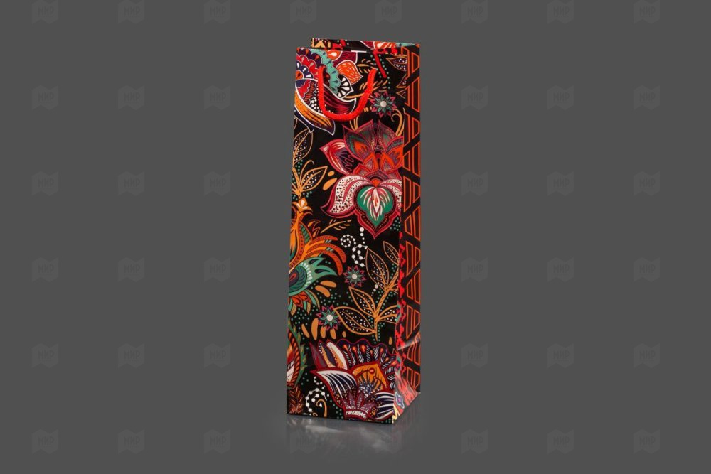 Пакет ламинированный под бутылку 33*10*10см Бежевые цветы 12шт