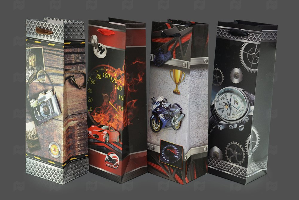 Пакет ламинированный под бутылку 35*12*9см Ассорти №7 12шт