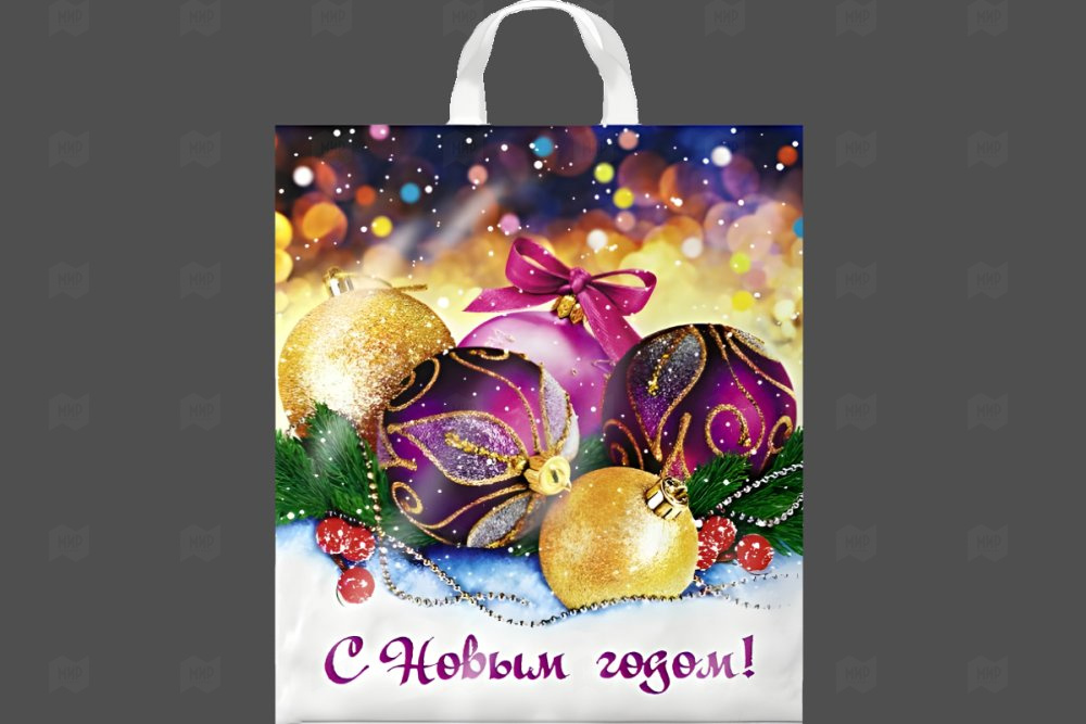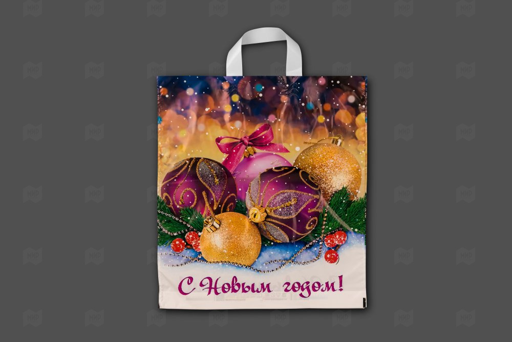 Пакет с петлевой ручкой ПНД 38*42см 40мк Декабрь НГ 25шт