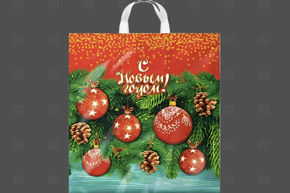 Пакет с петлевой ручкой 40*42см 45мк Елочный декор НГ 25шт