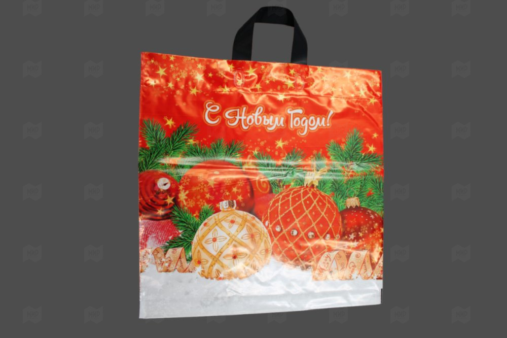 Пакет с петлевой ручкой 44*44см 70мк Золотые звезды НГ 25шт