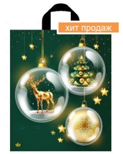 Пакет с петлевой ручкой 43*38см Изумрудный блеск НГ 50шт