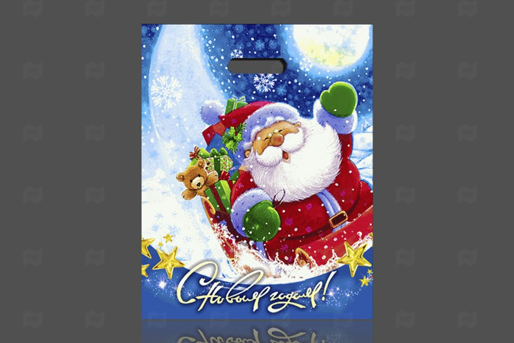 Пакет с вырубной ручкой 38*47см 60мк ламинация Новогодний привет НГ 50шт