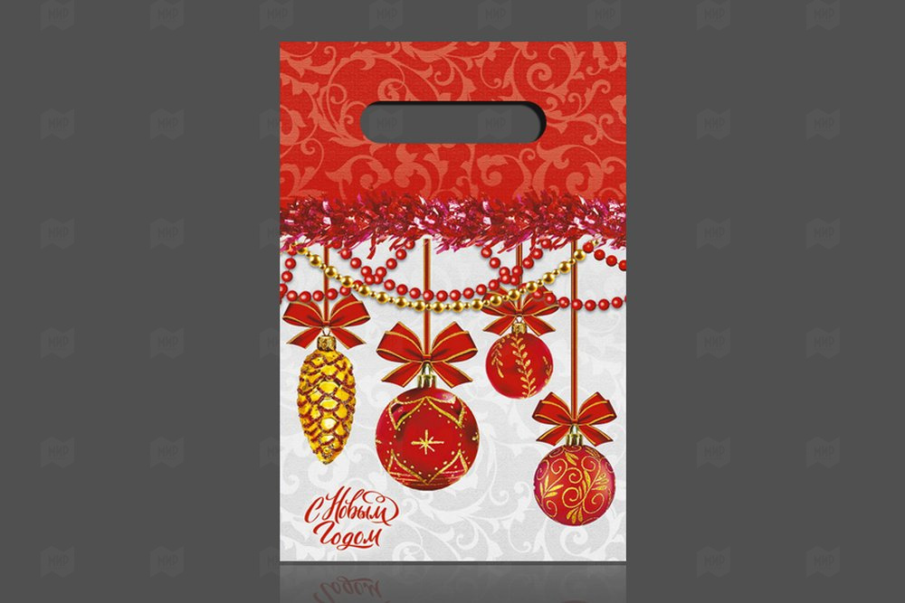 Пакет с вырубной ручкой 20*30см 30мк Бантики НГ 100шт