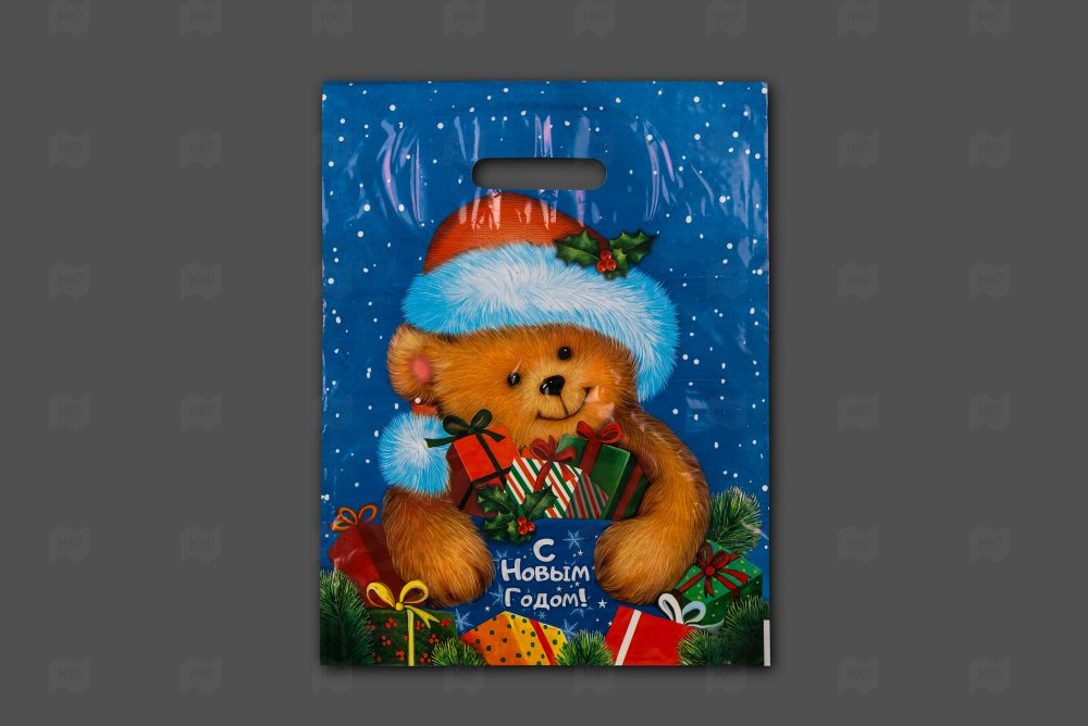 Пакет с вырубной ручкой 30*40см 35мк Мишутка НГ 50шт