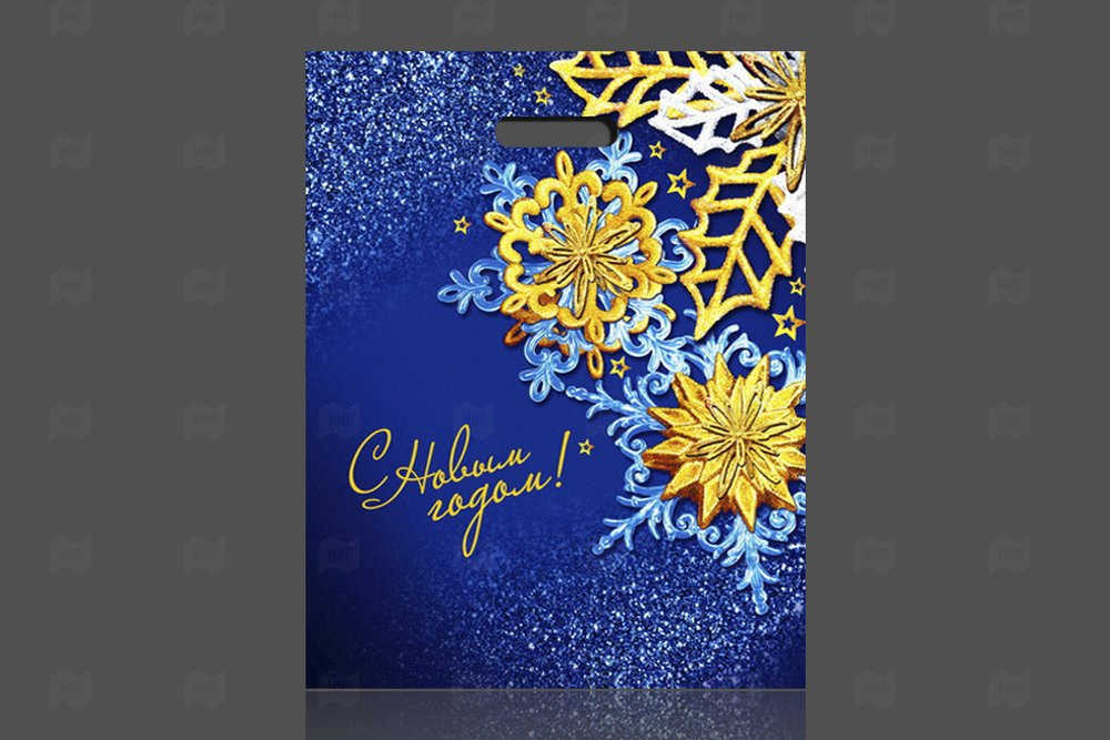 Пакет с вырубной ручкой 38*47см 60мк ламинация Северное сияние НГ 50шт