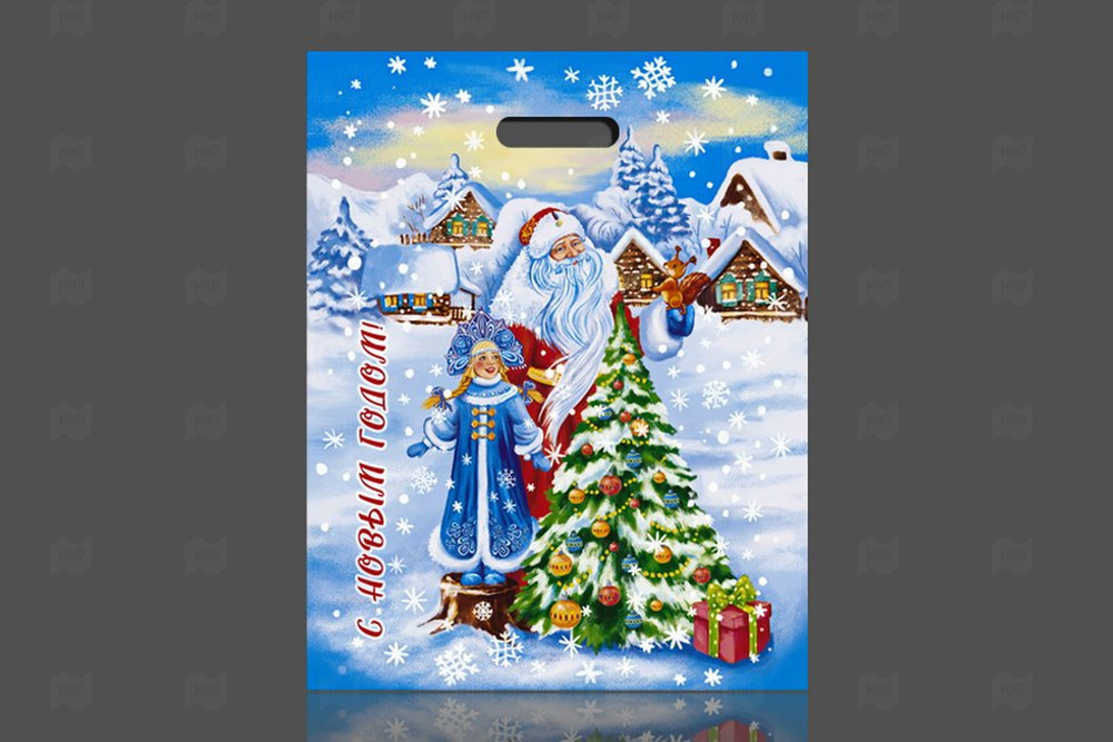 Пакет с вырубной ручкой 38*47см 60мк ламинация Сказочная околица НГ 50шт
