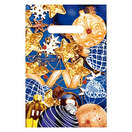 Пакет с вырубной усиленной ручкой 20*30см 30мк Новогодний серпантин НГ