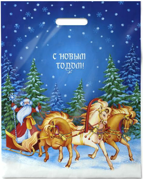 Пакет с вырубной ручкой 40*50см 75мк Мчится праздник НГ 50шт