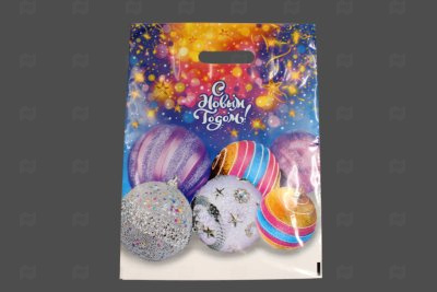 Пакет с вырубной ручкой 31*40см 60мк ламинация Дискотека НГ 50шт