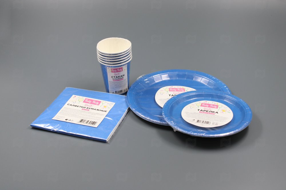 Набор тарелок бумажных синий d-230мм Party-Party day 6шт