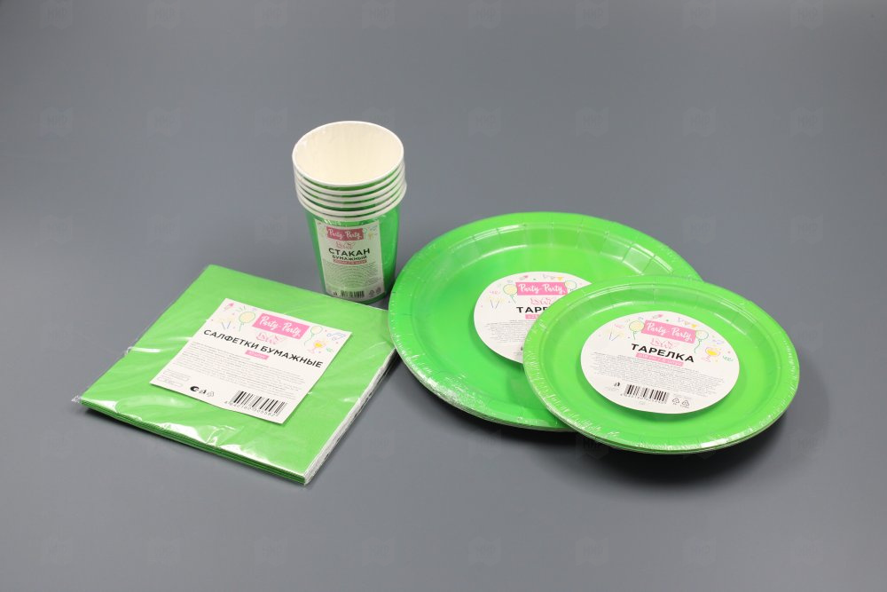Набор тарелок бумажных зеленый d-230мм Party-Party day 6шт