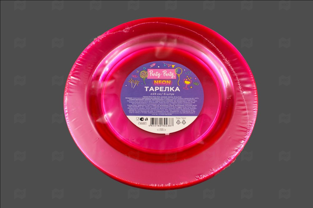 Тарелка пластик розовый 23см Party-Party Neon 6шт