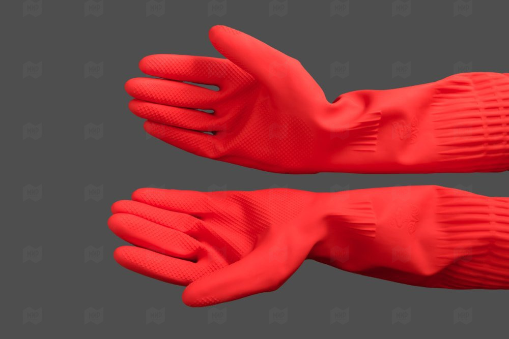 Перчатки хоз латексные с хлоп напылением с выс манжетой красные M 2шт