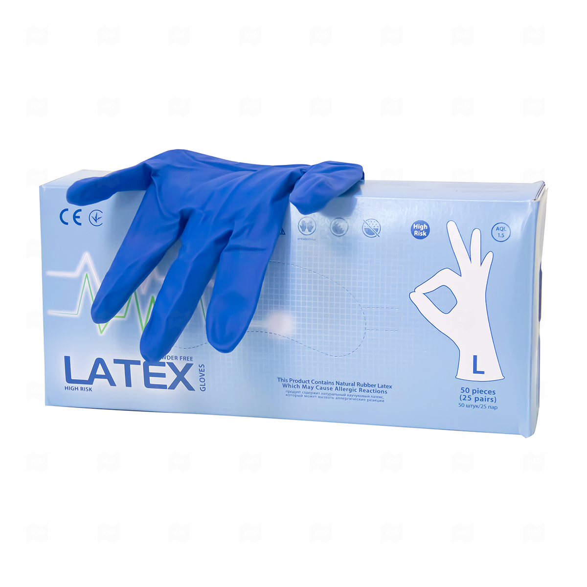 Перчатки латексные HIGH RISK голубые S 50шт Mediok