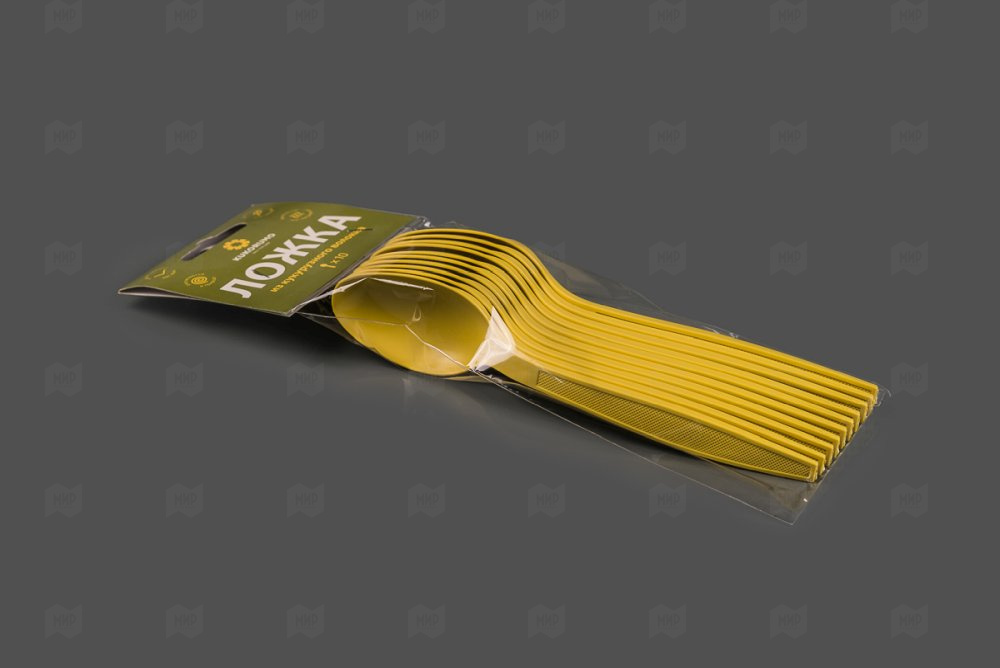 Ложка 170мм (10шт) кукурузный крахмал желтая Kukorumo